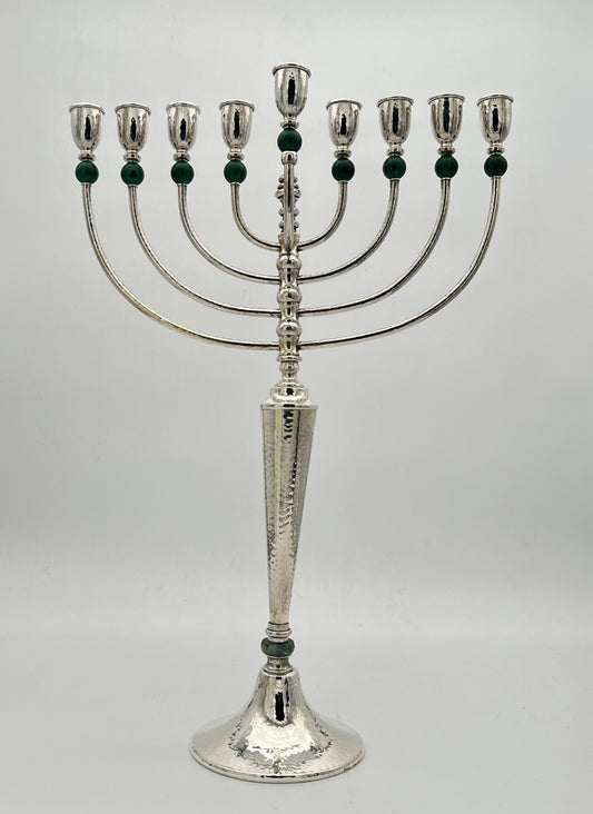 Malachite Chanukiah - sterling silver