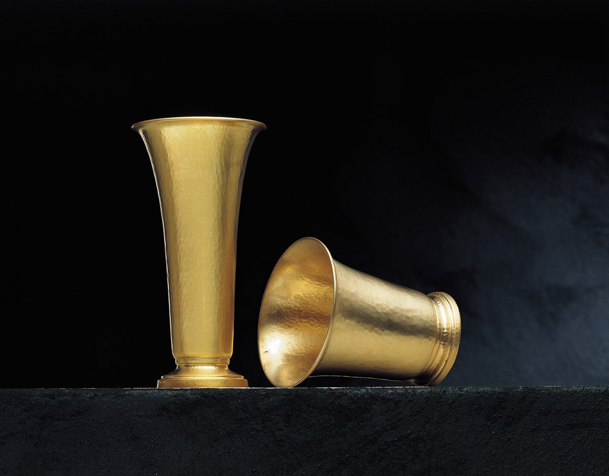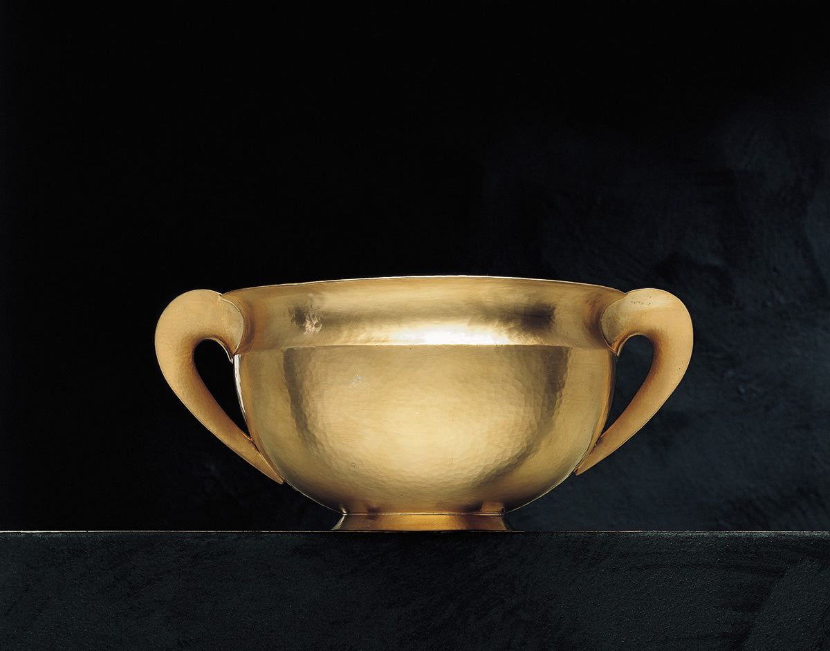 The Troia collection, which includes silver objects without a gold coating, is modeled according to the Greek theory of the golden section. Our only variation is on the empty-volume handles. The extremely thick matte golden coating, the refined hammering and the ancient forms recall the classic. They evoke the golden scale of Jupiter, the shield of Achilles and the treasure of Priam. Indeed, we are seduced by Troy.