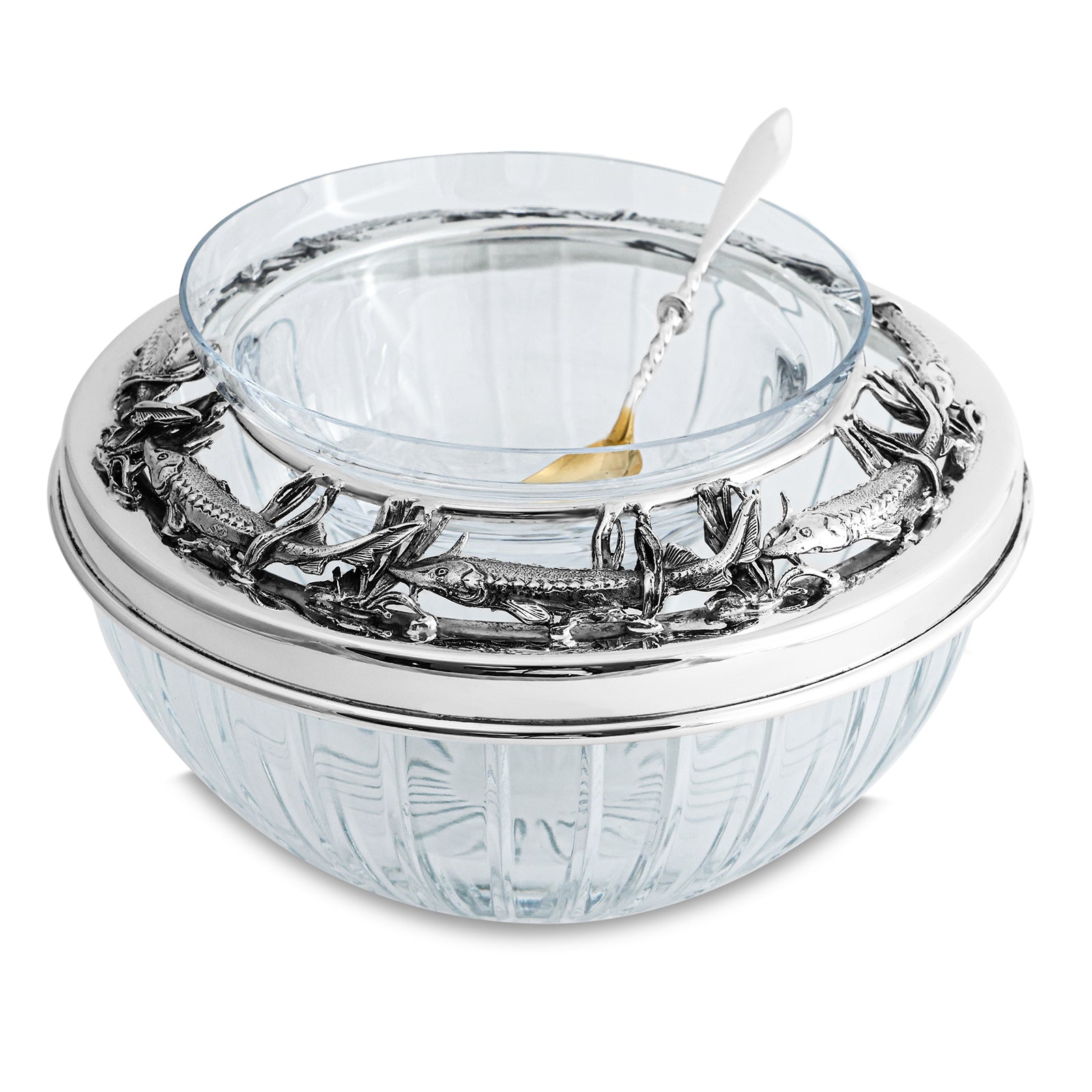 CAVIAR BOWL "STURGEONS" - STERLING SILVER