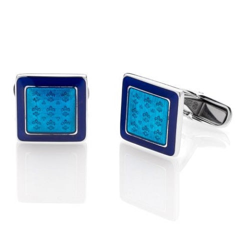 "9 FLEUR DE LIS" CUFFLINKS - STERLING SILVER WITH ENAMEL