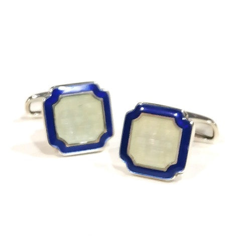 "SQUARE” CUFFLINKS - STERLING SILVER WITH ENAMEL