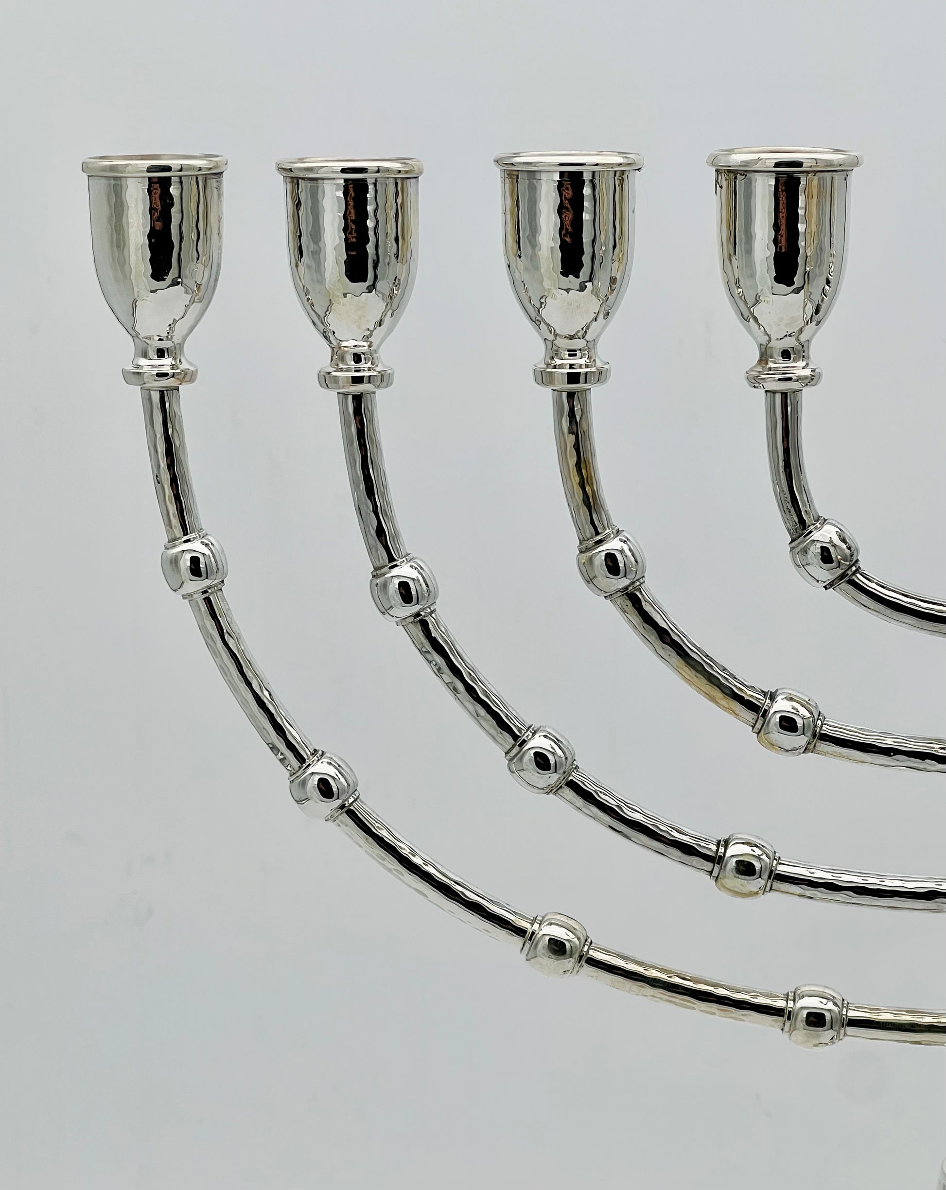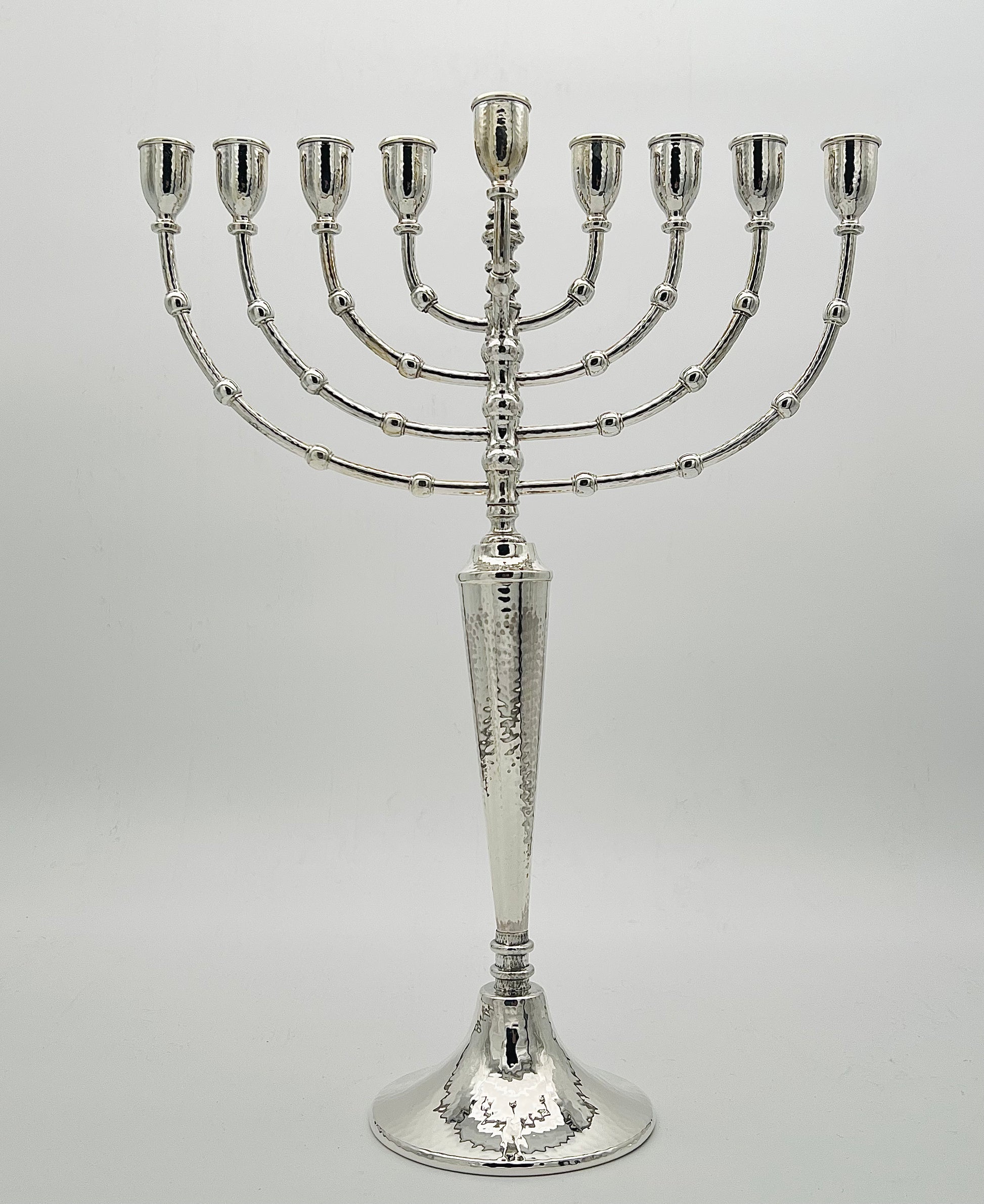 Elevate your Hanukkah celebrations with this striking Hammered Chanukia, standing at an impressive 51cm heigh