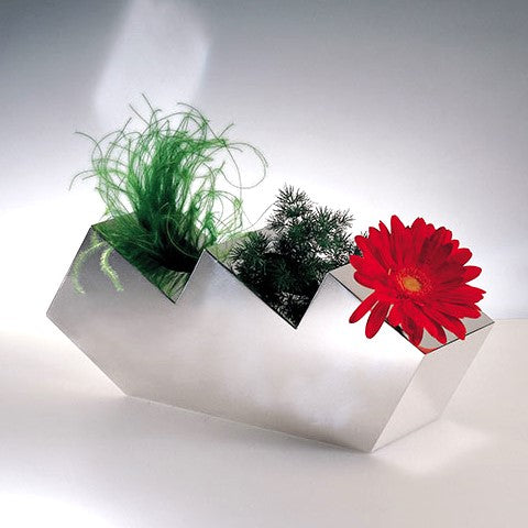 "The difficulties of an art appear in its least successful or even bad examples, whereas the good ones convey the certainty of easy success, precisely because everything in them has been solved and looks effortless". These words by the writer Ennio Flaiano nicely describe the results aimed at by us in producing the most challenging collections of silver. The reflecting surfaces of this large vase entail the utmost difficulty of manufacture. Our intent has been however to focus on a victorious battle won without uncertainties or adjustments or, still less, the sufferings of the handmade. The vase by Marco Zanini is intended to respect and enhance the beauty of flowers. With equal respect and enthusiasm we have tried to express in the finished work the original beauty of his drawing and the inner meaning of the design.