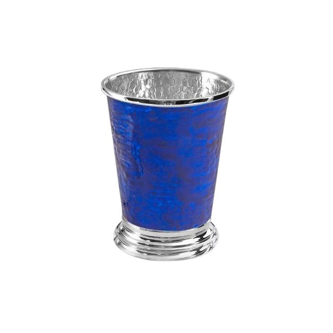 Hammered and blue enamelled silver plated cup, height 9 cm