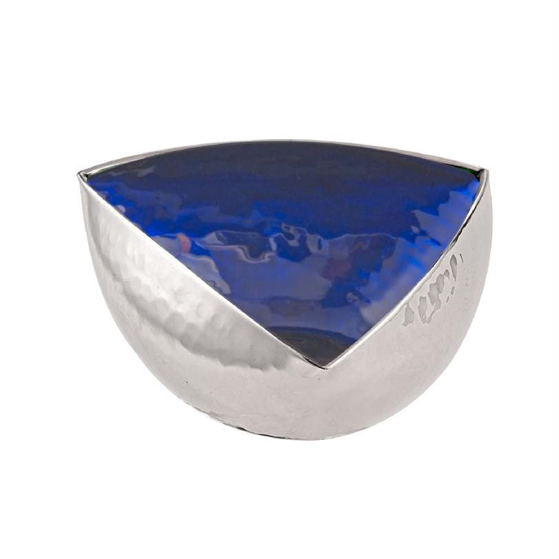 Hammered, blue enamelled silver plated triangular bowl Available in three sizes